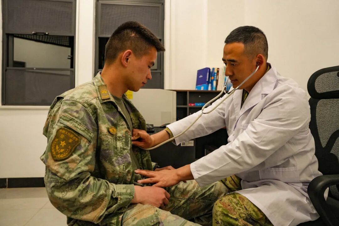 为官兵测量血压、检查体格