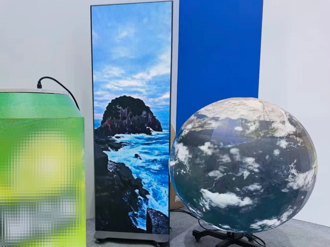 同时亮相的还有多款应用国星光电LED全彩显示器件的球形屏、易拉罐屏等异形屏应用方案,均以饱满的色彩表现和亮眼的视觉创意,展现国星光电多元化产品应用与场景创新的实力。