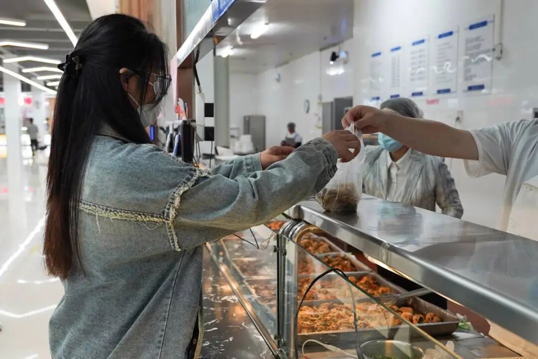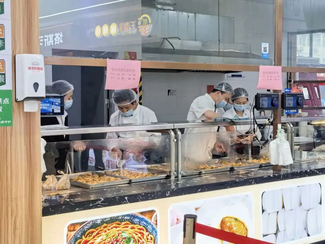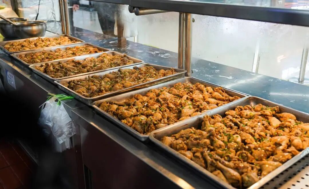 食堂师傅准备免费鸡腿。武汉商贸职业学院供图