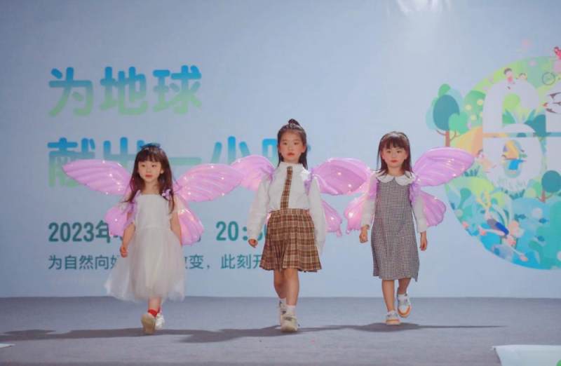 晚上8:30,重庆SM广场熄灭了不必要的照明设备,活动现场随着现场观众倒计时,迎来了奇妙而又惊喜的熄灯时刻。在熄灯的一小时里,SM广场邀请了小朋友和模特穿上由可再生纤维素纤维环保材料制成的服装,戴上可爱的荧光翅膀,共同展示了一场特别的环保服装走秀,将活动推向高潮。