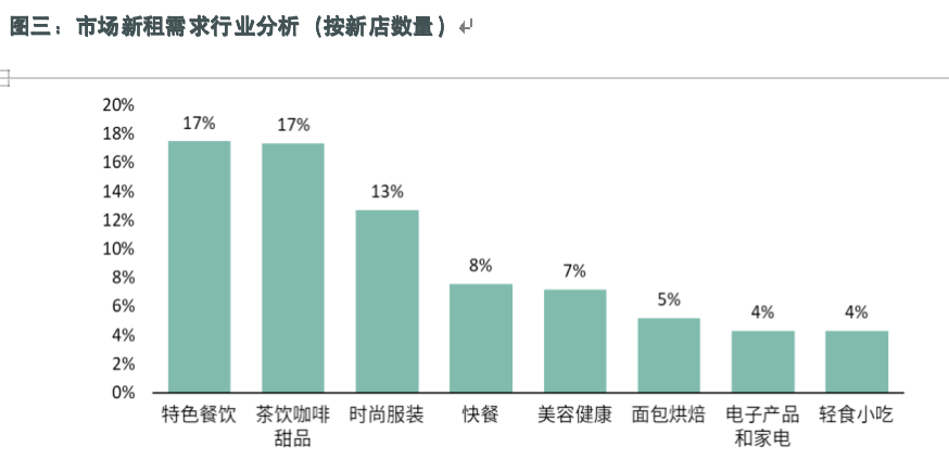本季度新租成交中,餐饮表现更活跃,占比53.0%,其次是零售业态(36.5%)。特色餐饮和茶饮咖啡甜品类在餐饮业态中表现突出。其中,日式餐饮积极扩张,如烧烤、放题、天妇罗、拉面和寿司等,涵盖特色餐饮和快餐,中式餐饮中的江西菜也表现积极。而新茶饮也在涌现,包括上山饮茶,找茶和各种泰式茶饮。另外,天环还开设了泰国人气甜品店Cheevit Cheeva的中国首店。零售业态方面,服装品类占比最高,国内连锁品牌主要在社区拓店,聚龙湾太古里则聚集了本地潮牌新店,除此以外,优衣库本季围板了天河路正佳广场原友谊百货一楼的部分面积,而UR则在江南西扩张,在原H&M店面开设副牌——本来(BENLAI)的新店。